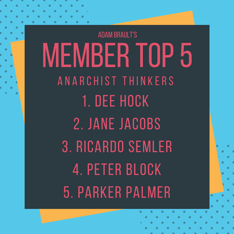 Top 5 favorite anarchist thinkers who deeply influenced my thinking about business, community building, life, and basically everything by Adam Brault Dee Hock. Jane Jacobs. Ricardo Semler. Peter Block.…