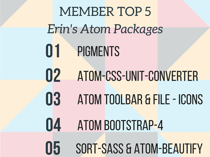 Today’s Top 5 is all about Atom packages, and it comes from Erin Schmidt! First, here’s a little info on Atom: Atom is described at atom.io as “a text editor that’s modern, approachable, yet hackable to the…